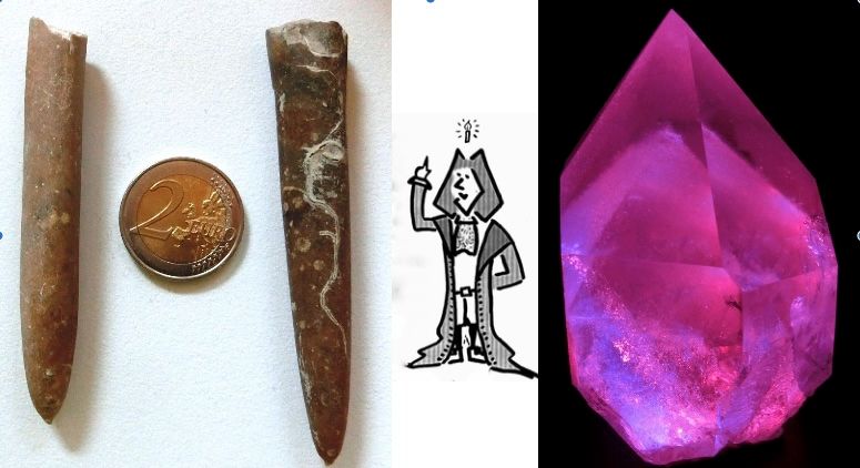 Links: Zwei Belemniten (Donnerkeile) aus der Mergelgrube Höver.